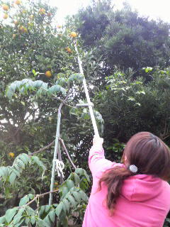上の方の柚子がですね、下の方の枝が邪魔で取れないんですよ。