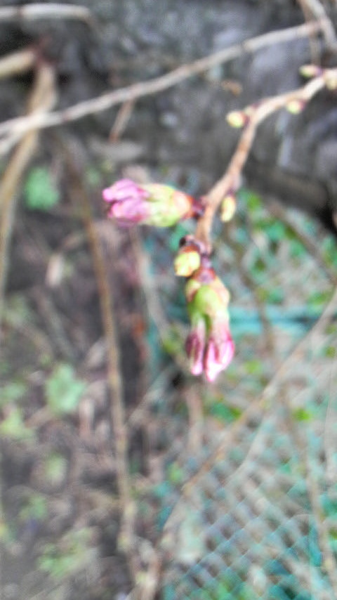 職場の駐車場にある桜の蕾も、4つだけだったんですけど だいぶ綻んでいて。