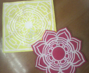 真世の作ったものや 本の図柄を見ながら線を書き写して、すごく真剣な顔で切り抜いてました。