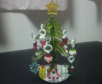 パソコンデスク用に買った、ガラス製のクリスマスツリー。