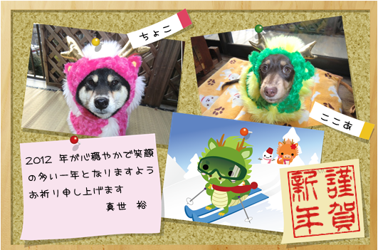 素材は真世が毎年お世話になっています 『LG辰の可愛い年賀状』 よりお借りしました。