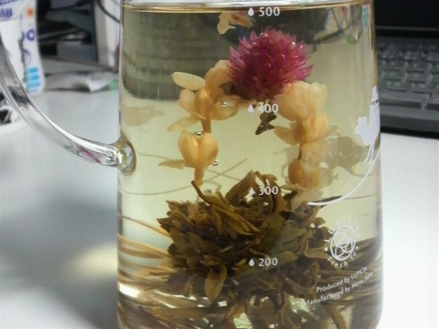 豆まきの間は自分の仕事が忙しくて、実際に泣いているところは見れなかったので残念だったなぁ…と今日の出来事を思い返しつつ、ルピシアの『茉莉福到花藍』でティータイム。