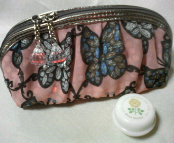 吉祥寺さんと柄違いのおそろいポーチ(笑)と香彩堂シアバター(ホワイトローズ)です。